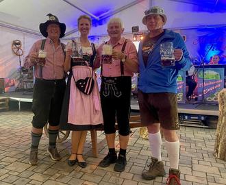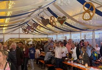 Geisa. Das war eine absolute Premiere im Schlossgarten in Geisa. Zum ersten Mal luden der FC Bayern München Fan Club Geisa und die Blauen Funken Geisa e. V. zu einem zünftigen Oktoberfest in das Festzelt ein. Mit dekorativen Brezeln und weiß-blauen Fahnen kam dort sofort typisch bayerischer Flair auf. Nach dem am Samstagabend Robert Ritz, Hubert Kritsch und Matthias Bott, gemeinsam mit Bürgermeisterin Manuela Henkel, den Fassbieranstich vollzogen hatten, konnten es sich die zahlreichen Gäste bei frisch gezapftem Oktoberfestbier und bayerischen Leckereien gut gehen lassen. Von Haxen, Weißwurst mit süßem Senf und Brezeln mit Obatzter war für jeden Geschmack etwas dabei. Beim bayerischen Olympiade-Maßkrug-Stemmen, konnte sich Josef Kiel durchsetzen. Musikalisch wurde der Abend von den Kettener Blasmusikanten und DJ Matze gestaltet. Am Sonntag ging es vormittags mit dem Volkswandertag und einem Weißwurstfrühstück los. Im Festzelt wurde dann zünftig weiter gefeiert, und die Stadtkapelle Geisa sorgte für beste musikalische Unterhaltung.