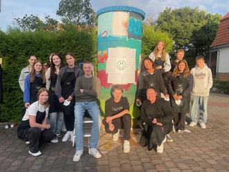 Die Schüler der Klasse 9 mit Lehrerin Dagmar Nicklich gestalteten die Litfaßsäule in der Alleestraße