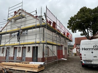 Borsch. Mit Mitteln aus der Feuerwehrpauschale des Landes Thüringen in Höhe von 25.000 EUR und einem Eigenanteil der Stadt Geisa in Höhe von 11.000 EUR soll das Dach des Feuerwehrgerätehauses saniert und energetisch ertüchtigt werden. Die Arbeiten bereits gestartet. Notwendig war die Maßnahme, da sich mittlerweile bei Sturm Ziegeln gelöst hatten und runtergefallen waren. Dadurch war die öffentliche Sicherheit mittlerweile gefährdet. Um im Rahmen der vorgegebenen Kosten zu bleiben, engagieren sich auch die Feuerwehrkameraden ehrenamtlich bei der Baumaßnahme. So wurde das Gerüst von ihnen gestellt und die Ziegeln abgedeckt. Ebenso soll die Dämmung von den Kameraden ehrenamtlich umgesetzt werden. Durch Einsparungen im Budget soll auch gleich noch die Außenfassade mitgestrichen werden. Bürgermeisterin Manuela Henkel dankt allen Beteiligten, besonders Ortsteilbürgermeisterin Sabine Volkmar, für ihr Engagement.