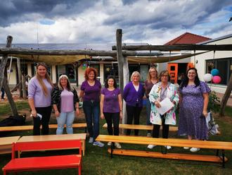 Es wurde mit einem bunten Programm gestartet, zu dem die Kinder passend in den Farben des Regenbogens gekleidet waren. Lieder, wie „Grün sind alle meine Kleider“ oder „Ich schenk dir einen Regenbogen“, Fingerspiele, wie „Alle meine Fingerlein wollen heute Farben sein“ und Gedichte zum Thema Farben und Sommer wurden vorgetragen. Diese hatten die Kinder mit den Erzieherinnen in den letzten Wochen vorbereitet. Dafür gab es natürlich von den zahlreich erschienenen Gästen einen kräftigen Applaus für die Frösche, wilden Pferde, Bienen, Eichhörnchen und Delfine, den Gruppen der Kita.