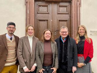 (v.l.n.r.) Wissenschaftlicher Koordinator Dr. Tobias Becker, Vivian Seidel, Direktoriumsmitglieder Prof. Dr. Claudia Wiesner und Prof. Dr. Philipp Gassert sowie Vorstandsmitglied Manuela Henkel