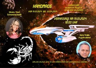 Handmade – so lautet das Motto von Jens Nolle, Künstler aus Eisenach, und der Ruhlaerin Maria Thiel. Eine Gemeinschaftsausstellung der besonderen Art. Hier treffen die Acrylmalerei von Jens Nolle und die Kunst des Paper-Cut oder auf Deutsch Scherenschnitttechnik von Maria Thiel aufeinander und ergänzen sich harmonisch.