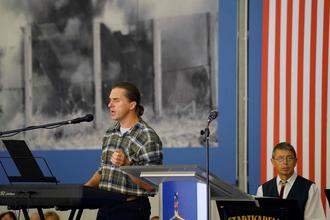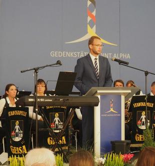 Zum Auftakt hatte Benedikt Stock, Geschäftsführender Vorstand der Point Alpha Stiftung, die Besucher in der vollbesetzten Fahrzeughalle begrüßt, darunter die Stiftungsratsmitglieder - Landrat Reinhard Krebs aus dem Wartburgkreis, den Thüringer Landtagsabgeordneten Martin Henkel sowie Rasdorfs Bürgermeister Jürgen Hahn. Stock stellte noch einmal die Dankbarkeit für 33 Jahre Deutsche Einheit heraus. Mit den Einnahmen der Kollekte würde die Jugendarbeit der Lichtbergschule Eiterfeld unterstützt. Zu gleich bedankte er sich bei allen Mitwirkenden und Helfern.