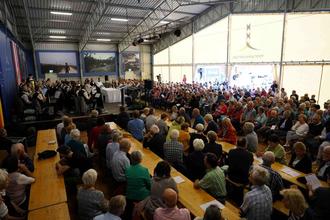Bis auf den letzten Platz belegt war die Halle beim Ökumenischen Gottesdienst auf Point Alpha