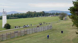 Besucher informieren sich auf Point Alpha