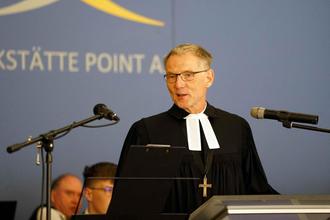 Rasdorf/Geisa. Der 3. Oktober ist der wichtigste Feiertag in Deutschland, weil er an ein großartiges Ereignis erinnert: die Wiedervereinigung. Es ist ein Tag, um zu danken und zu beten. Besondere Symbolkraft für dieses Wunder hat Point Alpha. „Es sind kirchliche und zugleich politische Erfolgsgeschichten des Protests gegen die Missstände in dieser Welt. Geschichten von Talenten, die sich entfalten in gelebter Nächstenliebe und im Einsatz für die Menschenwürde derjenigen, die Hilfe bedürfen“, hob Superintendent Christoph Ernst in seiner Festpredigt am „Tag der Deutschen Einheit“ im US Camp der Gedenkstätte hervor. Der Ökumenische Gottesdienst stand unter dem Thema „Die Kirche und der politische Protest“.