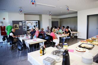 Im Souterrain der Galerie hatten Mitglieder des Fördervereins ein kleines Künstlercafé eingerichtet und die Gäste zu selbstgebackenem Kuchen eingeladen. Dabei konnten viele schönen Fotos von der Eröffnung der Galerie vor 5 Jahren angeschaut werden, die Oskar Simon und Werner Ziesch vom Fotozirkel des Fördervereins zusammengestellt hatten.