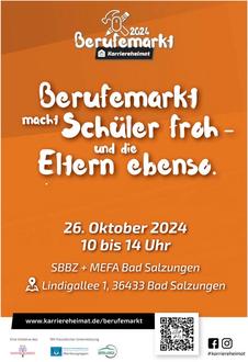 Der diesjährige Berufemarkt findet am 26. Oktober, 10 bis 14 Uhr, im Staatlichen Berufsbildungszentrum und der Medizinischen Fachschule in Bad Salzungen, Lindigallee 1, statt. Insgesamt haben sich 104 Unternehmen, Schulen, Hochschulen und beratende Institutionen als Aussteller angemeldet.