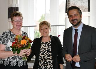 Landrat Dr. Michael Brodführer und Petra Lehmann, Gleichstellungsbeauftragte des Wartburgkreises, begrüßten Heike Langguth zum Einstand mit Blumen