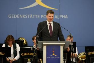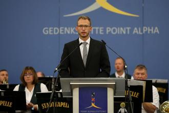 Die Mahnung von Point Alpha lautet: Wir brauchen eine europäische Friedensordnung, die den Nachfolgestaaten der Sowjetunion die Chance auf Sicherheit bietet, sich in Frieden und Freiheit entwickeln zu können. Dies erklärte der Geschäftsführende Ministerpräsident Bodo Ramelow in seinem Grußwort für den Freistaat Thüringen. Er fügte hinzu, dass die Ostdeutschen stolz auf das Erreichte sein könnten. „Wir aber erlauben uns eine Diskussion, dass alles schlecht ist und sich im Niedergang befindet. Das es nach dem Ende der DDR riecht“. Das alles habe er sich in den letzten Monaten anhören müssen, erklärte Ramelow und unterstrich, dass dies aber nur Menschen sagen würden, die die DDR nie gerochen haben. „Und wenn einer sagt, dafür sind wir bei der Wende nicht auf die Straße gegangen, der zu diesem Zeitpunkt 17 war und im Westen gelebt hat – da läuft es mir eiskalt den Rücken runter.“ Er jedenfalls werde alles dafür tun, dass Thüringen einen demokratischen Wechsel im Amt erlebe und man sich von niemanden auf der Nase herumtanzen lasse.