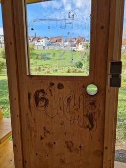 Die Tür des neuen Bücherschrankes wurde erheblich beschmiert