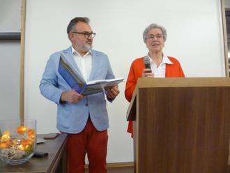 Mit dem Kapitel „Nachdenkliches und Heiteres“ geht die Lesereise durch den zweiten Band zu Ende. In diesem bunten Potpourri von diesem und jenem im Geisaer Amt, sei erst einmal die inhaltliche Seite angemerkt. So liest man etwas über die Wandergeschichte von Donatus Pfannmüller „Mein Weg nach Hinkelshagen“, über Episoden und Schnurren aus Bremen, Helmut Recknagel in Bremen, einen Ausflug um 1960 nach Spahl, zum Jubiläum des Geisaer Waldhäuschens, eine Ausflugsfahrt nach Dresden, sowie eine Anekdote aus der Schul- und Messdienerzeit und ein Gedicht vom alten Geisaer Kirchturm. Vorträge und Einführungen zu diesen Darstellungen kamen von Paula Rosa Henkel, Emil Winter, Ingrid Volkmar in Platt mit Übersetzung von Johannes Henning, Maria Hruschka und Wilhelm Ritz, zum Teil ebenfalls in verschiedenen Plattformen vorgetragen. Am Ende der Veranstaltung trat noch einmal Michael Kiel ans Rednerpult und stellte zum Thema Ballett die Leiterin der Ballettschule in Baunatal, Almut Anna Rudolph, geb. Ritz, vor.