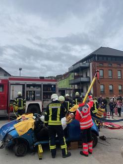 Die Freiwillige Feuerwehr demonstrierten die Rettung eines schwerverletzten PKW-Fahrers nach einem Verkehrsunfall