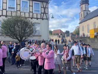 Die Kapelle zog mit den Kirmespärchen und den Gästen durch Geismar
