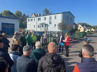 Geisa. Die Stadt Geisa und der Wasser- und Abwasserverband Bad Salzungen hatten am 1. Oktober zur offiziellen Einweihung und Freigabe des komplett neu sanierten Papiermühlenweges in Geisa eingeladen. Insgesamt investierten die Kommune und der Verband hier in den letzten zwei Jahre 1,5 Million EURO. „Der Papiermühlenweg war die schlechteste Straße in ganz Geisa und ist jetzt eine der schönsten“, freute sich Bürgermeisterin Manuela Henkel. Sie begrüßte zur Einweihung zahlreiche Anlieger, MdL Martin Henkel (CDU) Ortsteilbürgermeisterin Angela Zimmermann, die Erste Beigeordnete Simone Kleinstück sowie das zuständige Planungsbüro TTB Werra und die Baugesellschaft Ulstertal. Ihr besonderer Dank ging an den Wasser- und Abwasserverband Bad Salzungen und dessen Vertreter, Werksleiter Heiko Pagel, für die gute Zusammenarbeit bei dieser erfolgreichen Gemeinschaftsmaßnahme. Der Verband hatte für die Erstellung eines neuen Mischwasserkanals sowie für die Verlegung von Trinkwasserleitungen und Hausanschlüssen etwa 680.000 EURO investiert. Die Stadt Geisa übernahm die Straßenbauarbeiten in Höhe von 857.000 EURO. Davon trägt sie einen Eigenanteil mit 325.000 EURO, die restlichen Gelder werden über die Ausgleichsleistungen für Straßenausbaubeiträge über das Land Thüringen übernommen. „Wir sind über diese Unterstützung des Landes sehr dankbar“, betonte Manuela Henkel. Da die Baukosten in den letzten Jahren enorm gestiegen sind, wäre eine Beteiligung der Anlieger aktuell kaum noch vertretbar und machbar. Damit würde der Sanierungsstau in den Kommunen langfristig noch akuter werden. Ihr besonderer Dank galt auch allen Stadträten, die die Maßnahme befürwortet hatten. Ebenso dankte die Bürgermeisterin dem Planungsbüro und allen Bauarbeitern der Baugesellschaft Ulstertal für die hervorragende Arbeit. Der Papiermühlenweg war mit einer Länge von 743 Meter grundhaft ausgebaut worden, 700 Meter Leitungsgräben wurden ausgehoben und insgesamt 2.600 m³ Asphalttragschicht und Asphaltdeckschicht eingebaut. Auch Werraenergie und Überlandwerk beteiligten sich als Gas- und Energieversorger an der Maßnahme. „Das war insgesamt eine runde Sache“, bestätigte Werksleiter Heiko Pagel. 45 neue Hausanschlüsse konnte der Verband setzen und einen Mischwasserkanal von 530 Metern Länge verlegen. Auch Landtagsabgeordneter Martin Henkel freute sich über die Umsetzung der Maßnahme und forderte, dass der ländliche Raum weiterhin besonders bei Sanierungs- und Infrastrukturmaßnehmen vom Land unterstützt werden müsse. Dann konnten alle Gäste offiziell den symbolischen Banddurchschnitt vollziehen. Im Anschluss lud der Verband zum gemeinsamen Imbiss und einem gemütlichen Ausklang ein, bei dem sich die Anlieger sowie Vertreter der Stadt Geisa und der beteiligten Firmen in lockerer Runde austauschen konnten.