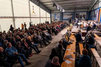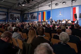 Bestens besetzt war die Fahrzeughalle beim Festakt zum 35. Tag der deutschen Einheit und 30 Jahre Point Alpha.