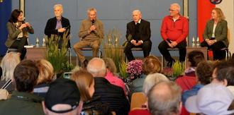 Über ein dunkles und tragisches Kapitel der DDR-Vergangenheit sprachen auf dem Podium die Zeitzeugen Christel Bittorf-Rasch (Hintere Mühle Unterweid), Bruno Heller (ehemals Seleshof Ketten), und Gerhard Heß (Kohlbachhof Kranlucken) mit Wolfgang Christmann (Burghaun) und Bruno Leister (Meiningen), den Autoren des Buches „Zur eigenen Sicherheit?“ Die Diskutanten informierten die Zuschauer anschaulich über die Geschichten der „Geschleiften Höfe“, erörterten Hintergründe und die menschlichen Schicksale der damit verbundenen Zwangsaussiedlungen. Heß zum Beispiel resümierte: „Ich kann die Heimat zwar noch besuchen, aber nicht mehr dort sein“ und Bittorf-Rasch fügte an „Freiheit ist aber unverhandelbar“. Moderiert wurde das Gespräch von Blanka Weber.