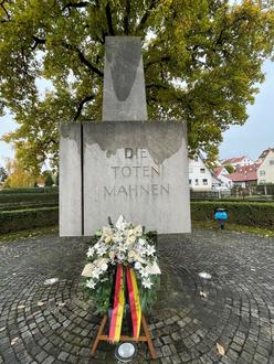 Der Kranz am Mahnmal in Geisa zum Gedenken der Toten