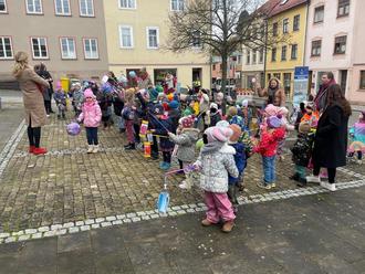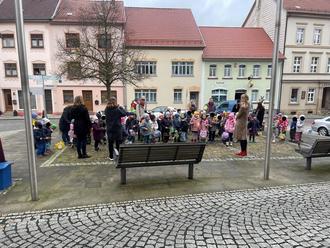Geisa. Traditionell zum St. Martins Tag am 11.11. zogen die Kinder des DRK-Kinderhauses „St. Maria“ mit ihren zum Teil selbst gebastelten Laternen, begleitet von fröhlichen Liedern, durch die Stadt. Am Marktplatz vor dem Rathaus wurden sie herzlich von Bürgermeisterin Manuela empfangen.
