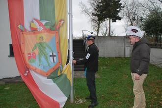 Lennard Egle übernahm den feierlichen Akt und setzte die Fahne mit Ehre und Präzision