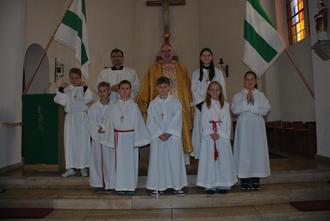 Die Fürbitten trugen Lilian Schlosser und Beatric Gassmann vor. Alfons Henning diente als Küster und Sebastian Schuchert sorgte mit seinem Orgelspiel für eine festliche musikalische Umrahmung. Auch die jüngsten Messdiener – Titus Schlosser, Augustin Schel und Lena Veltum – verfolgten in der ersten Reihe vor dem Altar die Zeremonie. Unter den Gästen befand sich auch Bürgermeister Johannes Ritz mit seiner Ehefrau.