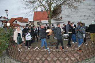 Im Anschluss an die Messe lud Bürgermeister Johannes Ritz die Kirmesgesellschaft und Blaskapelle zu einem kleinen Umtrunk auf sein Grundstück ein. Gemeinsam mit der Blaskapelle, bestehend aus Musikern aus Buttlar, Wenigentaft und Bermbach, zog der fröhliche Umzug durch das Dorf weiter zum Dorfgemeinschaftshaus. Aufgrund des Wetters wurde der traditionelle „Lindentanz“ kurzerhand in den Saal verlegt – der Stimmung tat das keinen Abbruch.
