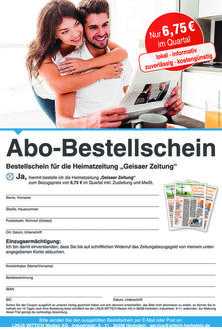 Wir freuen uns natürlich, wenn Sie der Geisaer Zeitung weiterhin treu bleiben und sich zweiwöchentlich weiterhin über Aktionen, Projekte in der Region und kommunale Vorhaben informieren.