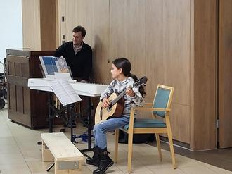 Martin Nitsche am Klavier und Rudi Nensel am Akkordeon (ebenfalls Initiator des Auftritts) begleitete die Kinder bei Gesang und Tanz. Ebenso gab es ein Klavierstück und ein zum Wetter passendes Gitarrenstück mit „Leise rieselt der Schnee“, welches die Bewohner zum Mitsingen anregte.
