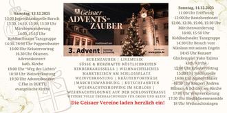 Geisa. In Geisa steigt die Vorfreude auf die Adventszeit: Die Planungen für den beliebten „Adventszauber“ laufen bereits auf Hochtouren. Peter Kling und Ortsteilbürgermeisterin Angela Zimmermann luden kürzlich zur ersten Organisationsrunde in die Räume des Rhönklubs ein, um die Weichen für den Weihnachtsmarkt 2025 zu stellen.