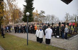 In einer Minute des Schweigens gedachten die Anwesenden der Verstorbenen, bevor sie gemeinsam mit der Stadtkapelle „Großer Gott, wir loben dich“ sangen.