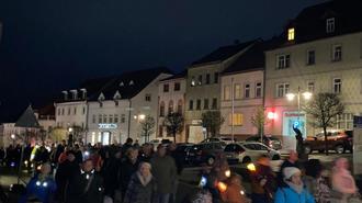 Die Erstkommunionkinder erzählten und spielten die bekannte Geschichte des Heiligen, der seinen Mantel mit einem frierenden Bettler teilte – ein Symbol für Nächstenliebe und Hilfsbereitschaft. Musikalisch begleitet wurde das Anspiel vom Kinderchor Bremen-Geisa unter der Leitung von Klarissa Nitsche, der mit einer tollen Liedauswahl für eine feierliche Stimmung sorgte. Nachdem Stadtpfarrer Martin Lerg den Segen an alle Besucher spendete, zogen die Teilnehmer mit ihren bunten Laternen gemeinsam mit der Stadtkapelle Geisa durch die Straßen rund um die Kirche. Abgesichert wurde der Zug, wie jedes Jahr, durch die Freiwillige Feuerwehr Geisa. Der Martinszug endete am Athanasius-Kircher-Haus, wo der Pfarrgemeinderat mit vielen fleißigen Helfern bereits auf die Teilnehmer wartete. Hier konnten sich alle mit warmen Getränken und leckeren Würstchen stärken. Die Messdiener verteilten die traditionellen Martinshörnchen. Große und kleine Gäste ließen es sich gemeinsam schmecken und den Nachmittag im Laternenschein ausklingen.