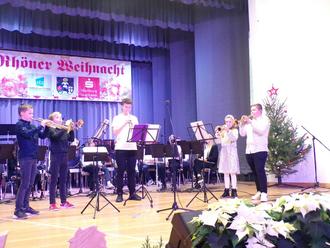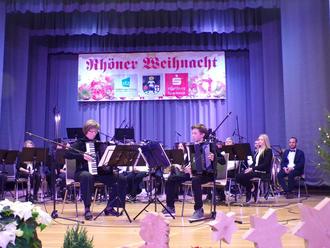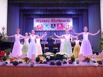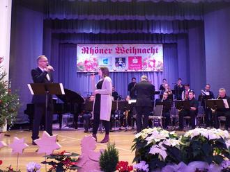 Den zweiten Teil der „Rhöner Weihnacht“ eröffnete die WAK-Bigband unter Leitung von Jochen Wölkner mit “All the things you are” sowie den folgenden Liedern „The Christmas Song“ und „The Spirit of St. Frederick“ mit Solotrompeter Stefan Stertzing und Sängerin Sophia Rohm. Die Jugendtanzgruppe der Musikschule Wartburgkreis präsentierte die Aufführung des Tanzes “Schneemuster”. Weitere Höhepunkte des Abends bot das Bläserquintett aus der Rhön „Stylistic Brass“. Die fünf Vollblutmusiker präsentierten eine Auswahl ihres umfangreichen Repertoires, darunter „Walking in a winter wonderland“, „Carol of the Bells“ und einen ABBA-Mix unter anderem den Liedern „Mama Mia“, „The winner takes it all“, „Fernando“ und „Thank you for the music“ sowie „Let it go“ aus dem Disney-Film „Frozen - Die Eiskönigin“. Mit der Interpretation von “A Charlie Brown Christmas” und „My Way“, gesungen von Rigo Wildförster sowie „Have yourself a merry little Christmas“ im Duett gesungen von Rigo Wildförster und Sophia Rohm beendete die WAK-Bigband ein weihnachtliches Konzert der Extraklasse, das die Besucher der „Rhöner Weihnacht“ mit anhaltendem Beifall honorierten. Moderatorin Stefanie Ihling bedankte sich zum Abschluss bei der Stadt Geisa, insbesondere bei Bürgermeisterin Manuela Henkel und Tourismusbeauftragter Romy Graser, bei der Wartburg-Sparkasse für die Unterstützung und vor allem bei ihrem Team der Musikschule Wartburgkreis, den Musiklehrern und den Musikschülern, die „mit einer solchen Bühne die Möglichkeit haben, sich und ihr Können vor großem Publikum zu präsentieren“.