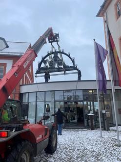 Anbringung des Schwibbogens mit Hilfe des Bauhofes der Stadt Geisa über dem Eingang zum Schloss Geisa