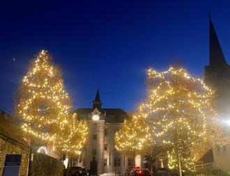 Geisa. Das historische Schlossensemble in Geisa leuchtet seit Neusten in einem ganz besonderen Lichterglanz. Mit einer Spende der Werner Deschauer Stiftung wurden die zum Schlossplatz führenden Bäume mit energiesparenden LED-Lichterketten bestückt. Dadurch entsteht eine Art Lichterweg, der direkt zum Stern, der in der Mitte des ehemaligen Amtsgerichtes leuchtet, als Ziel führen soll. Damit soll an die Weihnachtsgeschichte angeknüpft werden, in der der Stern den Menschen den Weg zeigt. Das Licht auf dem Weg an den Zweigen der Bäume soll die frohe Botschaft von Jesus Christus symbolisieren. Bürgermeisterin Manuela Henkel, dankte der Werner Deschauer Stiftung für die Unterstützung und dem Bauhof der Stadt Geisa sowie der Firma Elektro Henkel aus Hünfeld für die Anbringung. „Damit haben wir wieder ein kleines Highlight umgesetzt, um unsere Stadt - vor allen Dingen in der Adventszeit - noch attraktiver zu machen und um etwas mehr Licht in die Herzen der Menschen zu bringen.“