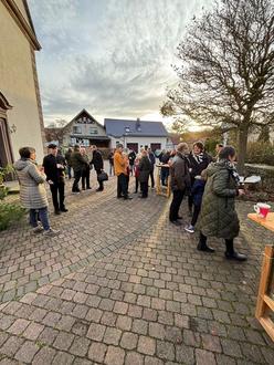 Im Anschluss an das Konzert versammelten sich die Gäste auf dem Kirchplatz, um den Nachmittag bei selbst gebackenem Kuchen, Kaffee und Glühwein ausklingen zu lassen. Die Geburtstagsfeier der Kirche wurde ehrenamtlich gestaltet und es wurden Spenden für die Renovierung der Leichenhalle gesammelt. Die Gemeinde kann sich über einen beachtlichen Betrag von über 1.200 Euro freuen.
