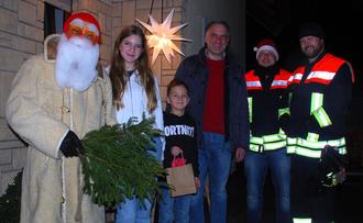 Ortsteilbürgermeister Michael Kehl (Mitte) nutzte die Gelegenheit, um das Engagement der Feuerwehr Wiesenfeld zu würdigen und die Fortführung dieser schönen vorweihnachtlichen Tradition hervorzuheben.