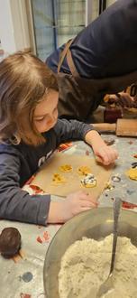 Unter der liebevollen Begleitung der Erzieherinnen Katharina Thiele und Carolin Faltl machten sich die Kinder mit großer Begeisterung ans Werk. Unterstützt wurden sie von den Café-Mitarbeiterinnen Daniela Methner und Ingrid Bott, die im Vorfeld alles sorgfältig vorbereitet hatten – vom Teig bis zu den kleinen Backstationen. In dieser warmen, familiären Atmosphäre konnten die Kinder erleben, wie aus einfachen Zutaten kleine Köstlichkeiten entstehen. Besonders berührend war der Moment, in dem die Kinder fröhliche Lieder anstimmten. Zwischen Mehl, Ausstechformen und frischen Teigkreationen verbreiteten sie eine vorweihnachtliche Stimmung, die das gesamte Café erfüllte.