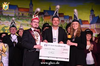 Geisa. Am 1. Februar 2025 erlebte die Narrenscharr eine unvergessliche Prinzenkürung des Geisaer Hinkelshagener Carneval Club e.V. (GHCC). Nach der Begrüßung von Zeremonienmeisterin Roswitha von der Reisemühle (Roswitha Noll), eröffnete Präsident Ex-Prinz Thomas I. vom Frankenland den Abend und hatte dabei bereits das Bild des mit Spannung erwarteten neuen Prinzenpaares im Gepäck, welches später seinen Platz an der traditionellen Prinzenpaar-Galerie finden sollte. Da die alte Galerie voll besetzt war, wurde durch Schoppehopper Andy Joschko, Prinzensucher Ex-Prinz Torsten V. vom Oberrain (Torsten Siebert) und Ex-Prinz Michael III. vom Boxberg (Michael Günther) eine neue Galerie gefertigt, welche nun genug Platz für die bisherigen als auch für zukünftige Prinzenpaare bietet. Das Ex-Prinzenpaar Ex-Prinz Martin II. vom Gangolfi (Martin Henkel) und Ex-Prinzessin Lea IV. vom Weinberg (Lea Nothe) betraten die Bühne, um anlässlich ihrer Spendenaktion für den GHCC e.V. den Scheck zu überreichen. Insgesamt wurden 1.800 € eingesammelt, die beiden rundeten aber auf und konnten so 2.000 € für die Beschaffung neuer Wimpel an den Präsidenten des Vereins übergeben.