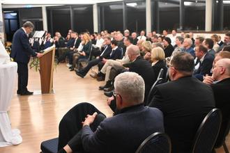 Der Festredner, Ministerpräsident a. D. Dieter Althaus, sprach in seinem Vortrag „Politik im Wandel“ über die aktuellen Gefährdungen der Demokratie in der globalen Ordnung. Er betonte, dass Politik von Menschen gemacht werde und verwies beispielhaft auf Helmut Kohl. „Es braucht glaubhafte Menschen, die ihrer Ämter würdig sind“, so Althaus und zitierte Prof. Dr. Fritz Stern: „Ein Staat lebt vom Systemvertrauen.“ Er würdigte ausdrücklich das Engagement Geisas, besonders für die Mahn- und Gedenkstätte Point Alpha und dankte stellvertretend Berthold Dücker. Althaus warb für europäisches Denken und Handeln und bezeichnete die Freiheit als ein Gut, das es zu erhalten, entwickeln und beschützen gelte. Nur gemeinsam und mit einer Rückbesinnung auf die Werte Freiheit, Demokratie und Rechtsstaatlichkeit ließen sich die großen Aufgaben lösen.