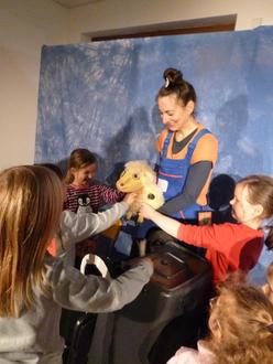 Besonders viel Freude bereitete den Kindern die musikalische Begleitung des Stückes. Die Bassgitarre wurde nicht nur vorgestellt, sondern auch ihr abwechslungsreicher Einsatz war für die Kinder erlebbar. Die vielseitigen Klänge überraschen die Kinder und luden ein mit zu tanzen und zu singen. Im Anschluss war Zeit das Theaterschaf nach Herzenslust zu streicheln, die Bassgitarre auszuprobieren und Fragen an die beiden Schauspieler zu stellen. Alle Kinder hatten sichtlich Vergnügen an der gelungenen Aufführung. An dieser Stelle ein großes Dankeschön an alle Eltern, Großeltern und Senioren aus Geismar. Der Besuch des Theaters Mittendrin wurde den Kindern von ihrer Spende im November/Dezember 2025 möglich gemacht.