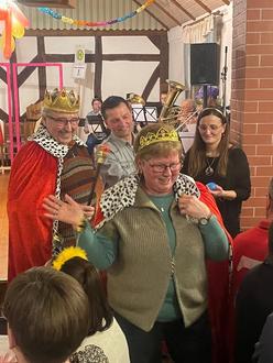 Kohlbachtal. Die närrischen Frauen hatten auch in diesem Jahr in den Saal der Gaststätte zum „Goldenen Stern“ zum Hausfasching nach Kranlucken eingeladen. Regina Bittorf führte durch das Programm und konnte tolle Beiträge ankündigen. Unter anderem berichtete Monika Diel als kauziger Typ über ihr verrücktes Leben. Harald Bittorf begeisterte als Odysseus, der über seine gefährliche Odyssee durch das Geisaer Amt berichtete. Viel Applaus erhielt auch der Beitrag von Hugo Sippel, der mit rockigen Musikeinlagen begeisterte. Die Kohlbachtaler Frauen berichteten aus dem Friseurstudio über die neuesten Entwicklungen in Kranlucken, Zitters und Gerstengrund. Benjamin Treis und Eric Weinbach schlossen sich als Tagesthemen-Moderatoren an und sorgten mit einer Live-Schaltung in das Außenstudio nach München für viele Lacher. Die Gerstengrunder begeisterten mit einer originellen Yoga-Einlage. Selbst Bürgermeister Sascha Völkner betätigte sich dabei sportlich. Abgerundet wurde das Programm durch tolle Showtänze der Tanzgruppe Kohlbachtal unter der Leitung von Susanne Treis. Als Überraschung des Abends wurde das diesjährige Prinzenpaar gekürt Elisabeth und Josef Meister werden das närrische Volk durch die diesjährige Saison führen. Musikalische Unterhaltung gab es von den Kohlbachtaler Blasmusikanten.