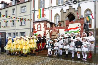 Traditionelle Schlüsselübergabe vor dem Rathaus in Geisa