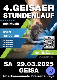 Geisa. Am 29. März findet ab 15 Uhr der 4. Geisaer Stundenlauf mit Musik auf der Interkommunalen Sport- und Freizeitanlage Geisa statt. Die Veranstalter freuen sich über eine rege Teilnahme.