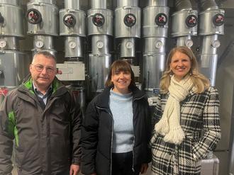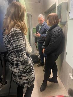 Bürgermeisterin Manuela Henkel, Bauamtsleiter Bodo Kind und Projektleiterin Olga Antosz bei der Besichtigung der Heizzentrale am Kurhaus in Geisa