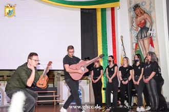 Im Anschluss begeisterte die Weiße Garde des GHCC e.V. mit ihrem Showtanz „SKATERGIRLS“ (trainiert von Juliane Lasslop und Simone Hergert). Die Ehrung des Silberprinzenpaares, Prinz Bernd II. vom Boxberg und Prinzessin Brit II. vom Geisbachtal, sowie des Goldprinzenpaares, Prinzregent Gerhard vom Borscher Hölzchen und Prinzessin Heidi I. vom Rockenstuhl, verlieh der Veranstaltung - nicht zuletzt dank der Worte von Ex-Präsident Peter vom Schloßberg zu Gangolfi (Peter Kling), einen festlichen Rahmen.