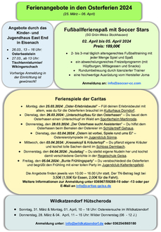 Alle gemeldeten Ferienangebote für die Osterferien im Jahr 2024 sind ab sofort unter https://www.wartburgkreis.de/leben-im-wartburgkreis/kinder-jugend-familie/freizeit abrufbar.