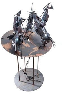 Mit den Kunstobjekten entstehen neue Sichtweisen, die zum Nach- und Weiterdenken sowie zum Diskutieren einladen. Ähnliches gilt für seine Gemälde, mit denen der Künstler Einblicke in seine Wahrnehmungen und Stimmungen gewährt. Barnickel selbst wird zur Eröffnung um 15 Uhr durch die Schau führen. Interessierte sind bei regulärem Gedenkstätteneintritt willkommen. Zweifelsohne ist ein Blickfang die „Apokalypse“, die Metallskulptur und Video zu einem Ganzen vereint. Die Figuren sind hier in einem ausweglosen „Circulus vitiosus“ gefangen. Mit dieser Darstellung weist die Botschaft der Apokalypse Barnickels über das Religiöse hinaus und wird zu einer gesellschaftlichen Allegorie. Dabei fragt man sich im Jahr 2025 unweigerlich: Wie weit sind wir tatsächlich schon hineingeraten in Barnickels Vision?