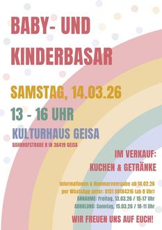 Geisa. Am 14. März 2026 öffnet der Baby- und Kinderbasar in Geisa erneut seine Türen im Kulturhaus und lädt Familien aus Nah und Fern in der Zeit von 13 bis 16 Uhr zum Stöbern und Kaufen ein. Angeboten werden gut erhaltene Baby- und Kinderkleidung für Frühjahr und Sommer, Spielsachen, Schuhe, Kinderwagen und vieles mehr – kombiniert mit einem reibungslosen Ablauf und viel ehrenamtlichem Engagement. Neben den Vorteilen für Käufer, die hier wahre Schnäppchen finden, profitieren auch die Verkäufer, die für ihre Artikel noch einen fairen Preis erzielen. Gleichzeitig leistet der Basar einen wichtigen Beitrag zur Nachhaltigkeit, indem Kleidung und Ausstattung weitergegeben statt entsorgt werden. Ein Anliegen ist den Verantwortlichen die Gemeinnützigkeit: Pro Veranstaltung kommen mittlerweile einige Hundert Euro zusammen, die an Kindergärten und Schulen im Geisaer Land und weitere gemeinnützige Projekte verteilt werden. Darüber hinaus gab es bereits gezielte Spendenaktionen für Menschen in Not oder mit Schicksalsschlägen. Für das leibliche Wohl ist wie gewohnt mit Kaffee, Kaltgetränken und hausgemachten Kuchen bestens gesorgt.