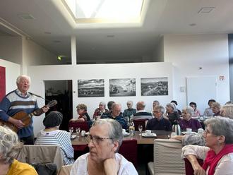 Die Idee zu diesem Nachmittag entstand im vergangenen Jahr bei einem Zukunftsworkshop im Athanasius Kircher Haus. Seniorenbeauftragte Elvira Fischer hatte sofort zugesagt, das gemeinsame Singen zu begleiten. Sie eröffnete das Programm in gewohnter Herzlichkeit und stimmte die Anwesenden in bekannte Volkslieder und Schlager ein. Musikalisch begleitet wurde der Nachmittag ebenfalls von Rudi Nensel aus Otzbach am Akkordeon. Zudem nutzten einige Gäste die Gelegenheit und griffen spontan zur Gitarre, um mit Rhöner Liedern den Nachmittag angenehm zu ergänzen. Die Teilnehmer sangen kräftig mit, kamen ins Gespräch und ließen sich den leckeren Kuchen und Kaffee schmecken.