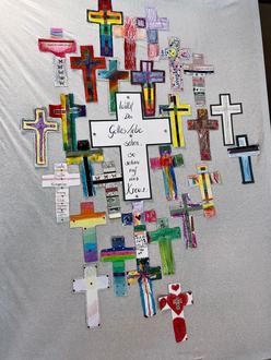 Die Familien gestalteten einige Kreuze